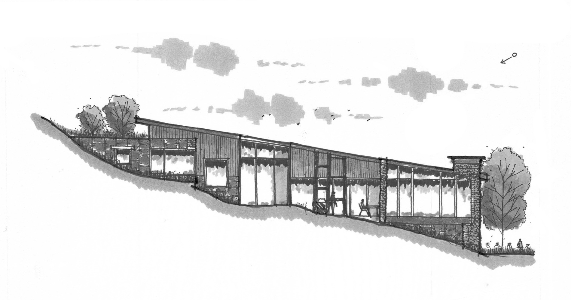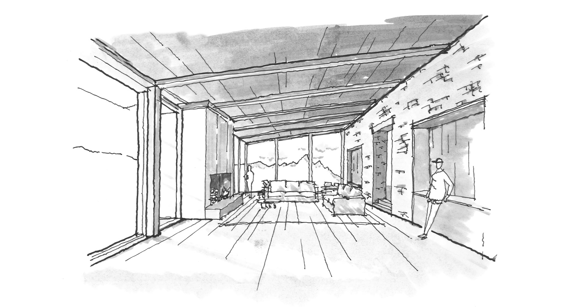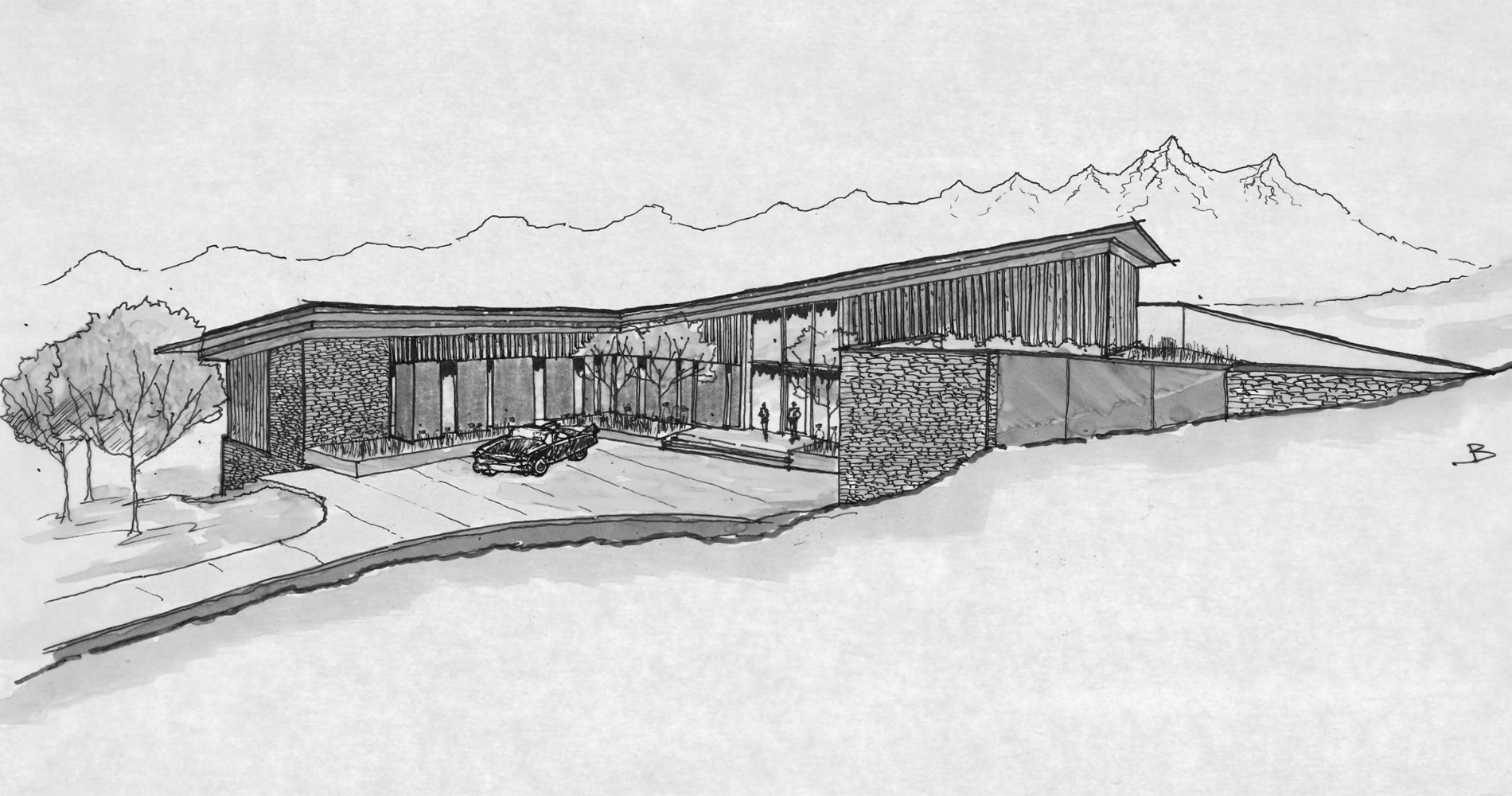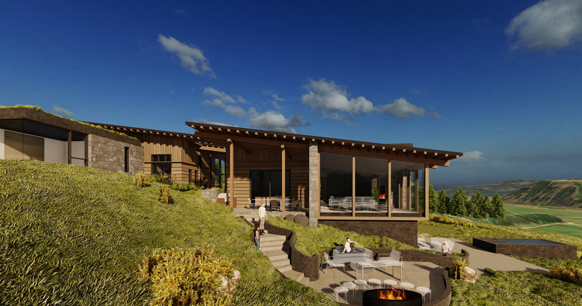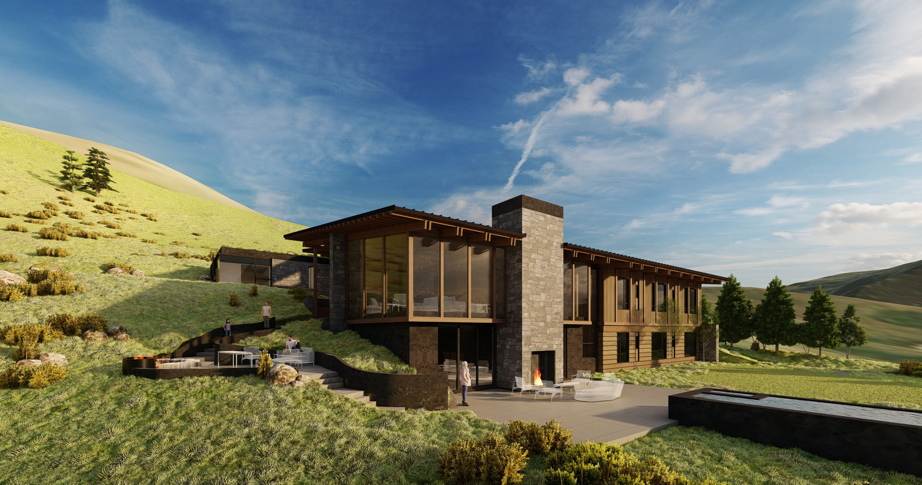 Set into the rolling slopes of East Gros Ventre Butte, this residence commands sweeping views of the Teton range and valley below. The stepped massing responds directly to the site's complex topography, ensuring uninterrupted vistas while weaving the architecture seamlessly into the landscape. A dramatic glass portal perfectly frames the mountains beyond in a striking moment of arrival. Blending contemporary form with traditional craft, the home juxtaposes clean lines with exposed timbers and raw, tactile materials, achieving a balance between modern expression and regional authenticity.
