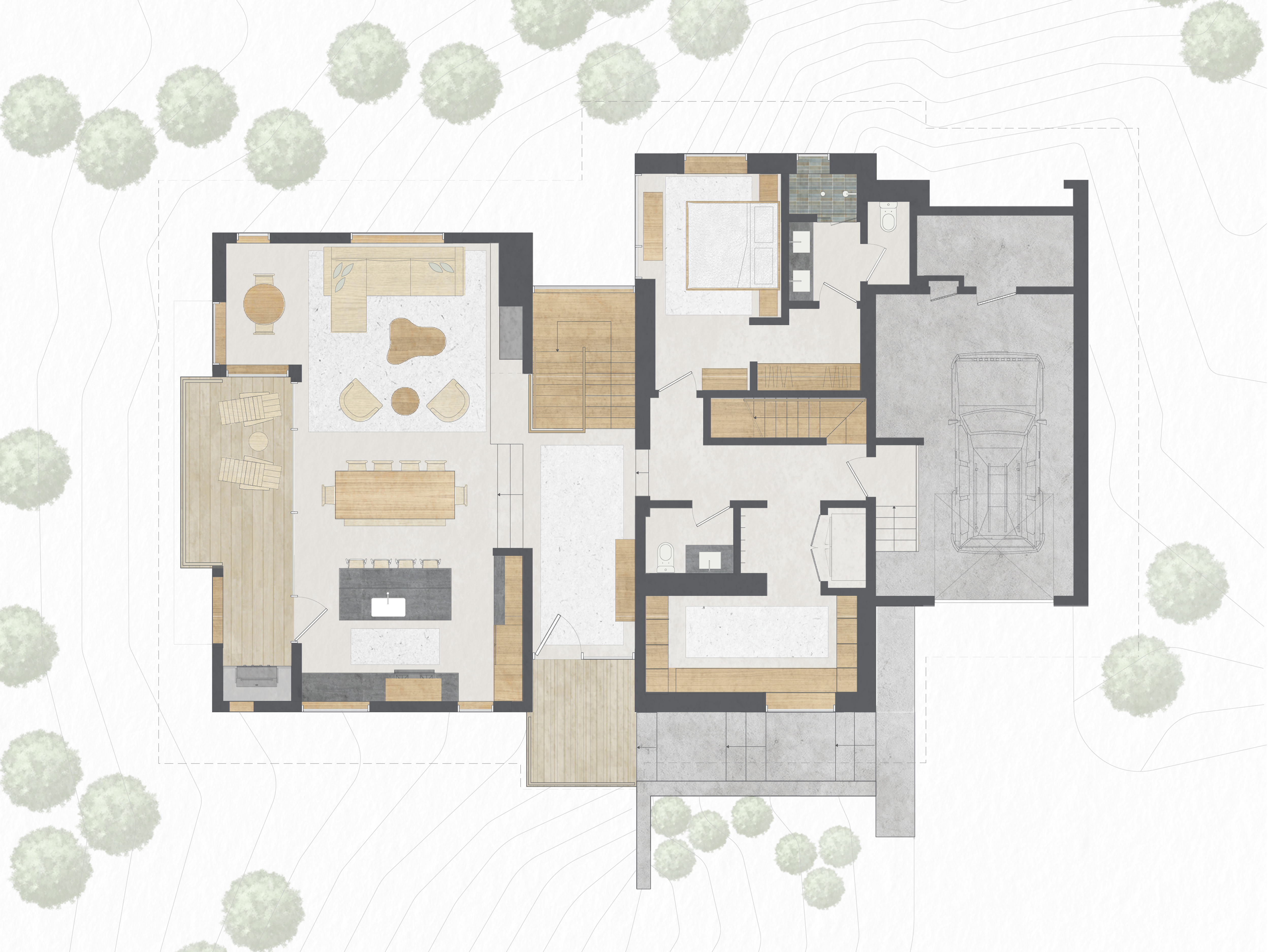 Perched on the southern hillside of Grand Targhee Resort, the Targhee Cabins frame sweeping views of the ski slopes and surrounding peaks. Designed as refined alpine retreats, each four-bedroom home offers direct access to mountain life with thoughtful integration into the landscape and elevated contemporary detailing. After an effortless stroll to first chair on powder mornings, owners return to warm saunas, soaking tubs, and all the comforts of a mountain retreat designed for time well spent with family and friends.